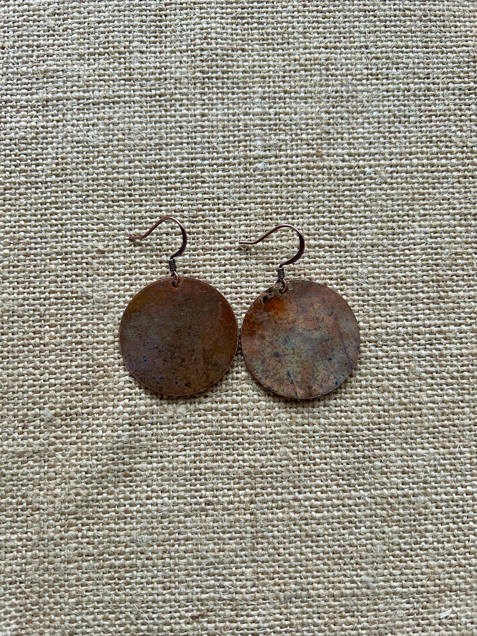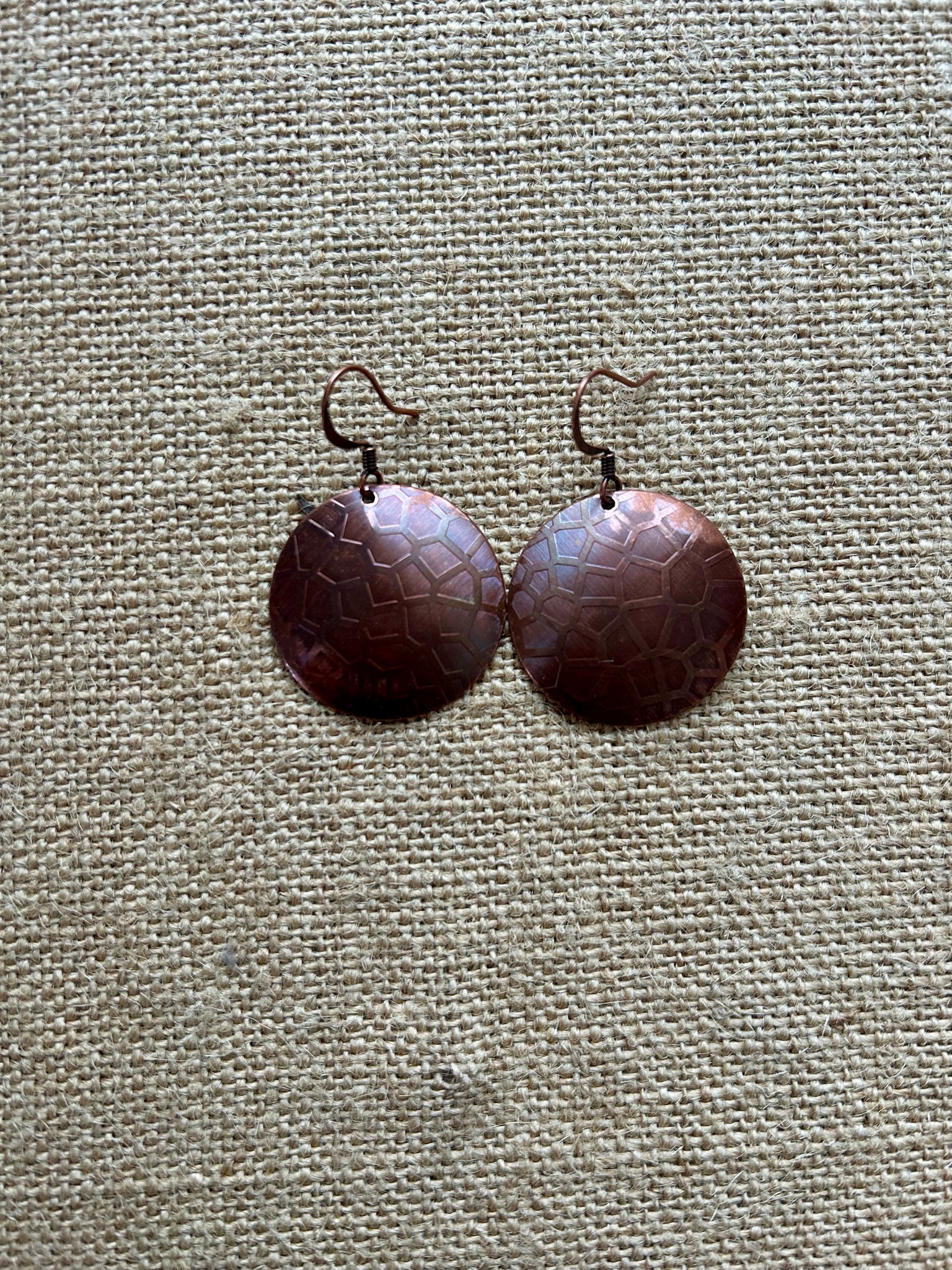 Using a plate roller with a particular design, like leaves or wavy lines, we were able to imprint the design onto our earrings and add a patina over it. These Copper Earrings are 1 of 5 different colors with this plate roller design. Hope you enjoy the designs of these earrings in any of our color options!