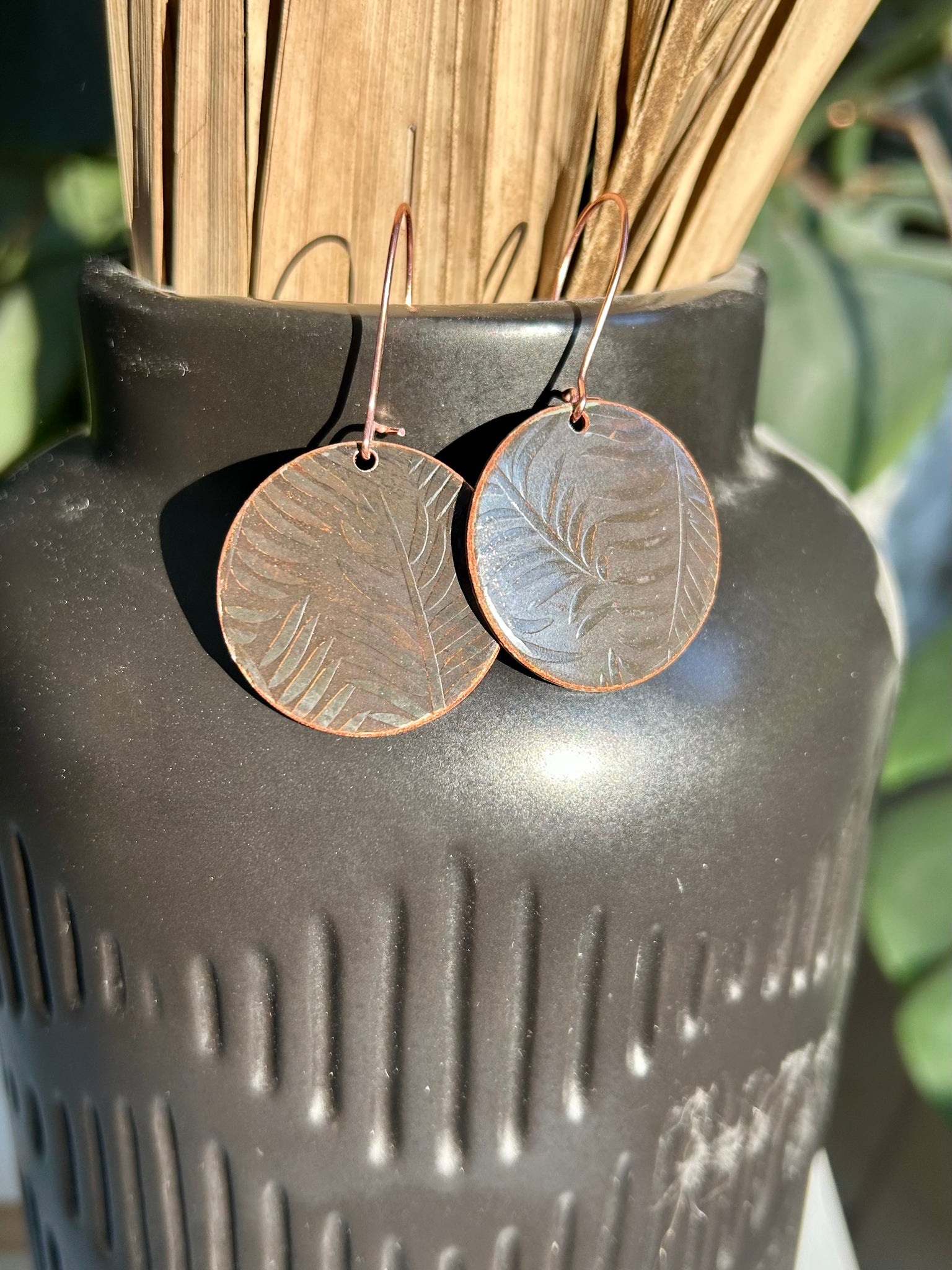 - Iridescent patina with leaf imprint