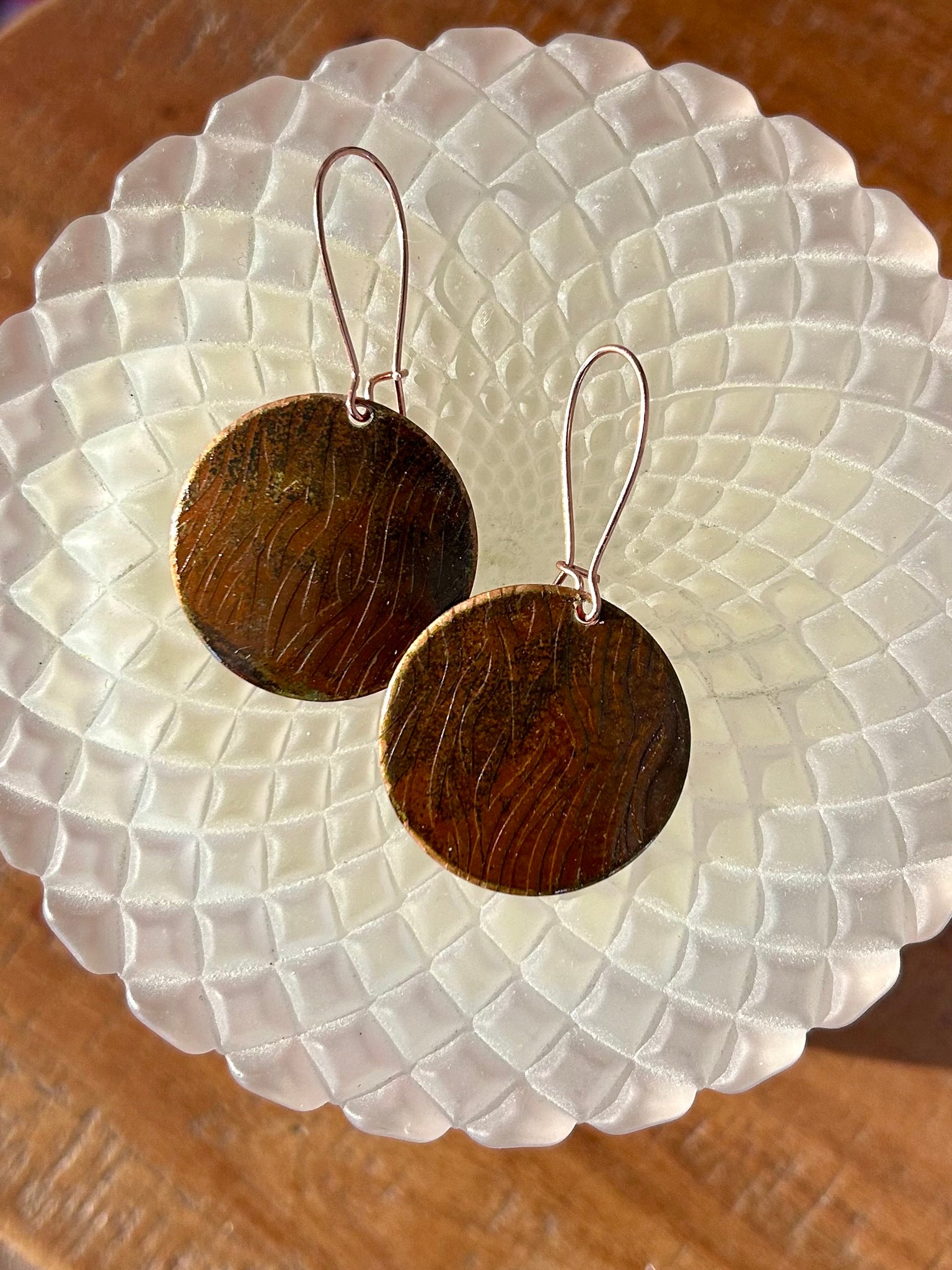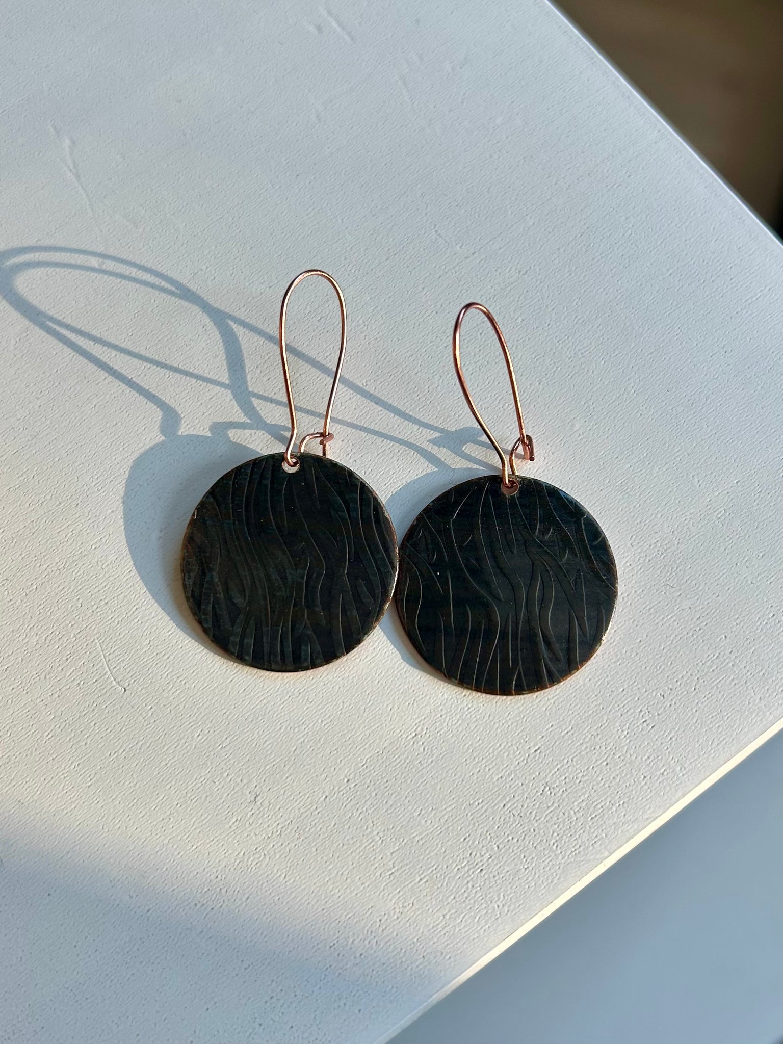 Using a plate roller, we can imprint various designs onto our earrings. And, with these particular earrings, we offer a longer fishhook. With that said, we have a limited selection with these options: